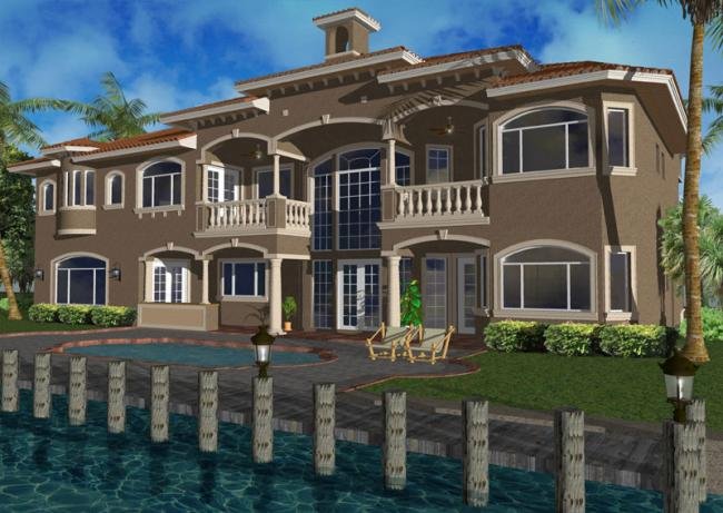 This beautiful classic Florida-style waterfront two-story residence features four bedrooms and five and a half bathrooms plus a cabana and a three-car garage. Columns, arches, covered balconies, and a sumptuous covered entrance with the eight-foot arched wood front door, provide a strong curb appeal and luxurious inside and out. The 1st floor features a large living room with 2 story tray ceilings and a stately fireplace, a gourmet kitchen with an eating bar and cafe, a separate library, and media rooms. A residential elevator invites you to the second floor with a luxurious master suite with a large walk-in-closets, morning kitchen, tray ceilings, regal master bathroom with additional storage areas open to a private balcony.