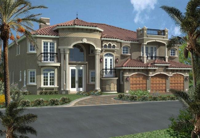 This beautiful two-story Florida Spanish Mediterranean style luxury features five bedrooms, five and a half bathrooms plus a cabana, a three-car garage, a towering covered entrance with an eight-foot french front door with arched transom and balconies. This design provides a large living room, a huge island kitchen with an eating bar, open to a family room, a media room with a wet bar, and a billiard room. On the second floor, a luxurious master suite with large walk-in closets and morning kitchen, tray ceilings with regal master bathroom opened to a private patio make that design very desirable.