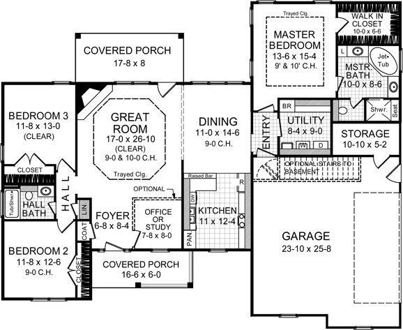 This home features the popular split floorplan layout and includes a spacious, open living area where your family can relax at the end of a long day. The isolated master suite has a trayed ceiling, jet tub, separate shower, large walk-in closets, and dual lavatories. The large utility/laundry has plenty of space for storing and folding clothing and other goods. The expansive great room features a gas log fireplace, and space to build an optional home office/study. The covered rear porch is a great space for grilling out and visiting with friends. The kitchen has a raised bar for friends and family to visit while keeping them out of the work triangle. A great plan and is easy to build.