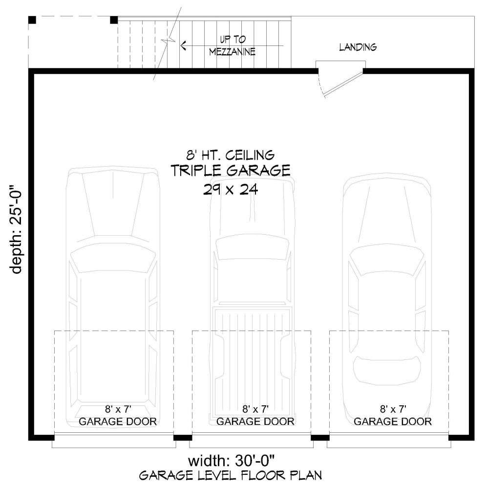 A three-car garage with three 8'x7' garage doors and an upstairs Mezzanine!