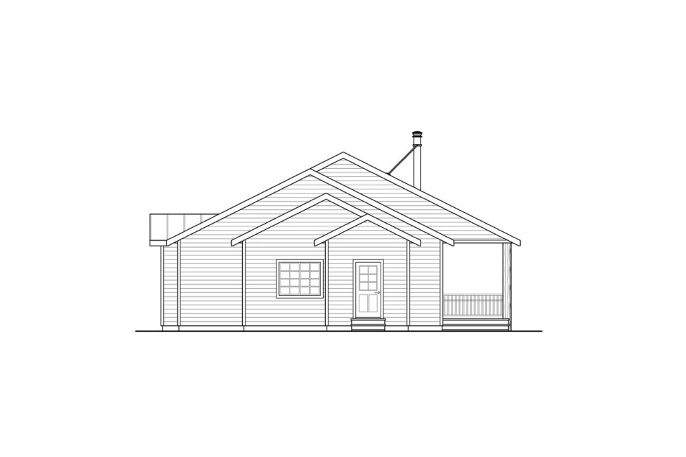 Stepped and layered gables, a welcoming exterior, and a beautiful, covered wrap around style porch with log posts are the highlighting features for the Woods Creek house plan. With a single story and 1395 sq. ft. of space, this plan is perfect for simple Country living. Boasting Three Bedrooms all along the right side of the home, the Woods Creek is also a great choice for a vacation home or getaway. The Owners Suite has a rather large walk in closet and even bigger bathroom, with its own separate shower and bathtub. The two neighboring bedrooms share a bathroom between them, with access through the hallway from the Living Room. Increasing the visualization of space without increasing the square footage, the left side of the home that is made up of the Living, Dining and Kitchen area are all Vaulted. Cozily tucked away at the rear of the home is the Utility Room, which houses the washer, dryer, forced air unit and water heater. Through that room is the rear exit to outside.