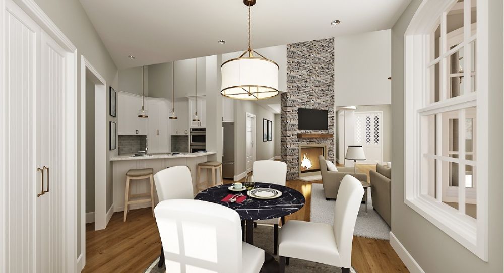 | Ceiling Features | Living room ceiling slopes from 9' to upper level ceiling height. Sloped ceiling in the kitchen. 10' ceilings in the dining, foyer, master bedroom, and front secondary bedroom. |
