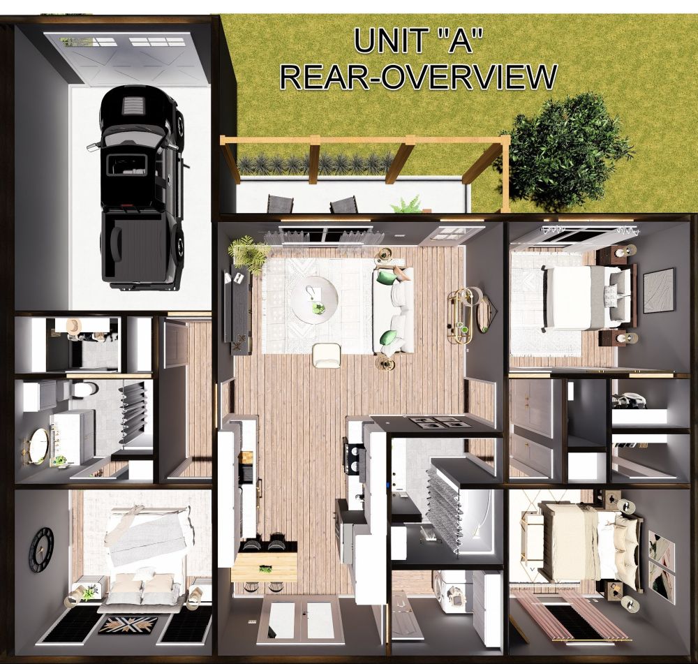 Welcome to this beautifully designed 6-bedroom, 4-bath duplex offering the perfect blend of comfort, privacy, and style. This multi-family plan contains 1,340 square feet of heated living space on each side with the layout centering around a large great room that connects the living, dining, and kitchen areas, creating an open-concept living space ideal for everyday living and entertaining.